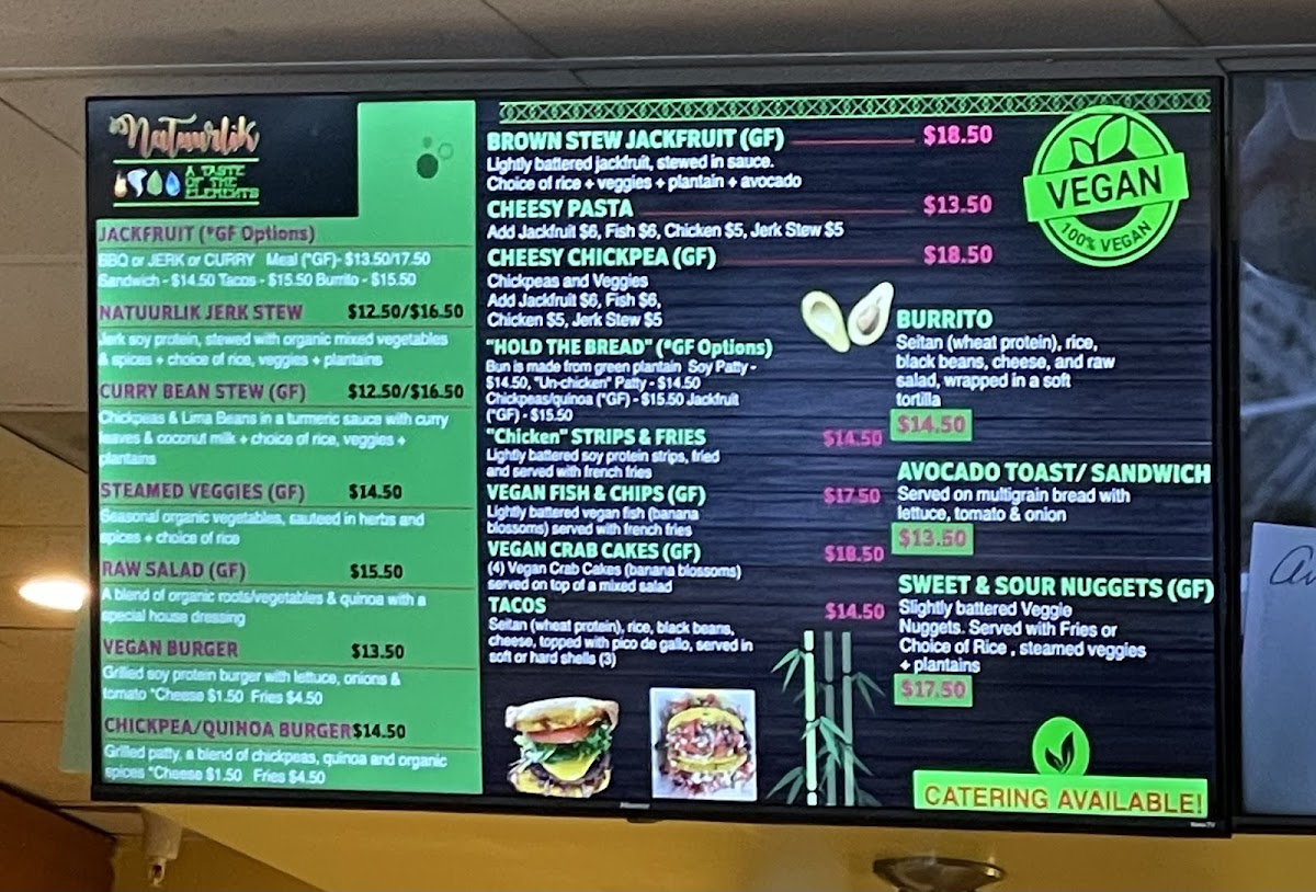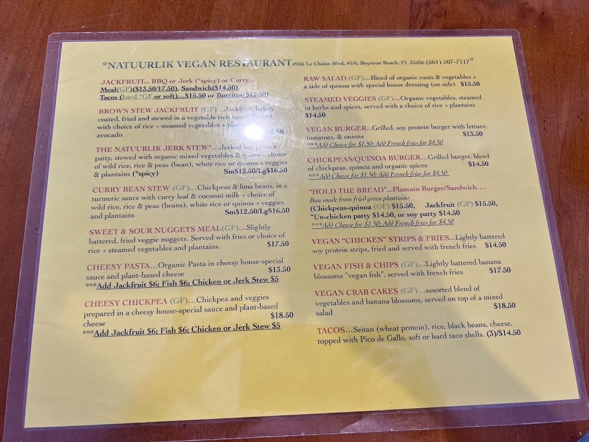 Welcome to Natuurlik, a culinary gem located at 4956 Le Chalet Blvd in Boynton Beach, where wholesome goodness meets vibrant flavors. Their all-day menu showcases jackfruit in delightful variations—think BBQ, jerk, or curry—in sandwiches, tacos, burritos, or a hearty meal, each priced affordably between $13.50 and $15.50. The spotlight shines on their Natuurlik Jerk Stew, featuring jerked soy protein simmered with organic vegetables, served with your choice of rice or quinoa, all for just $12.50.